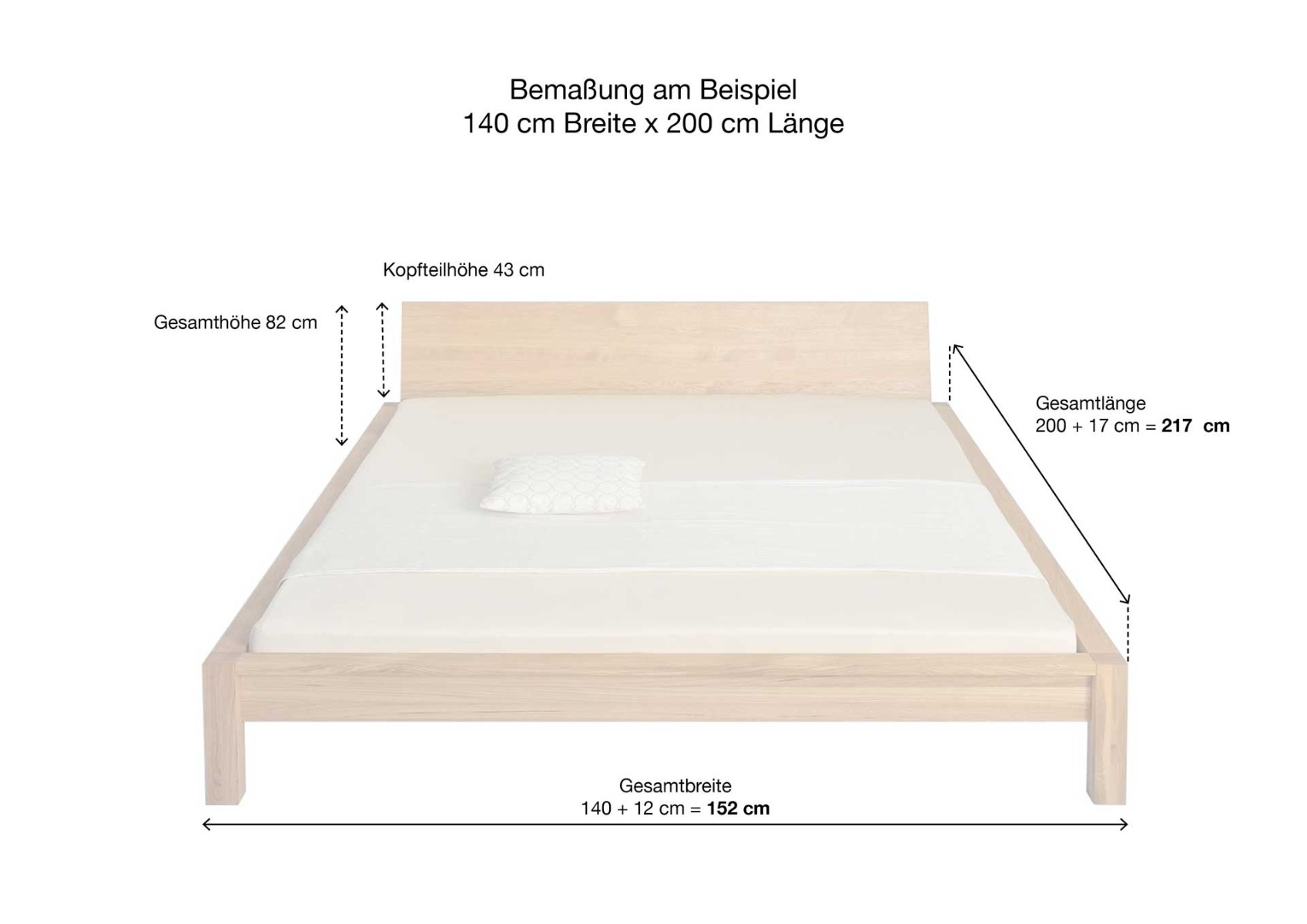 - Außenmaße: Breite + 12 cm, Länge + 17 cm
